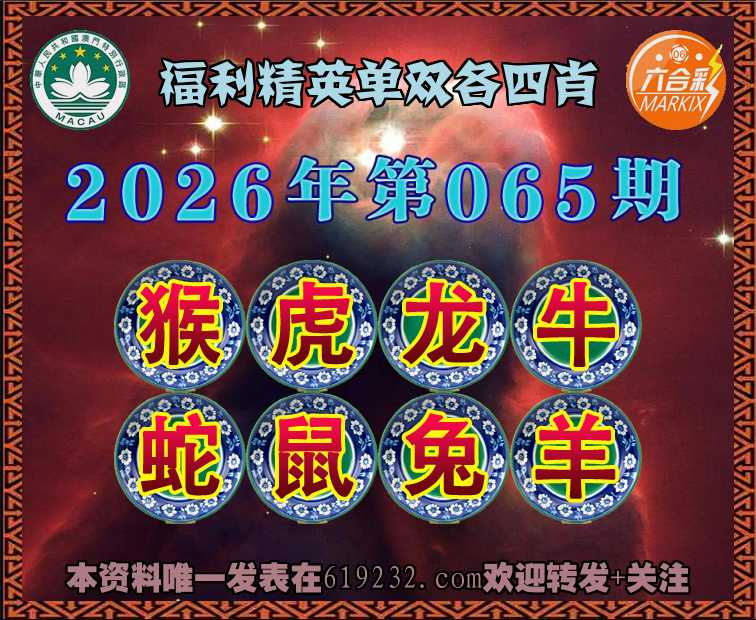 065期: ☺️『福利精英』 ☺️单双各四肖☺️开:虎05准上榜高手