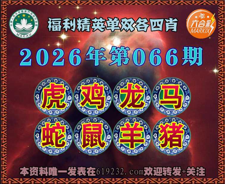 066期: ☺️『福利精英』 ☺️单双各四肖☺️开:00准